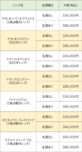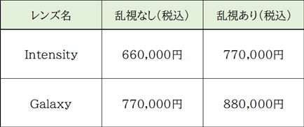※価格は全て片眼での金額になります。